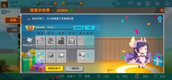 3. 福利大放送:购买悦享卡的玩家还将获得丰厚福利,包括:稀有道具、游戏币、皮肤等。